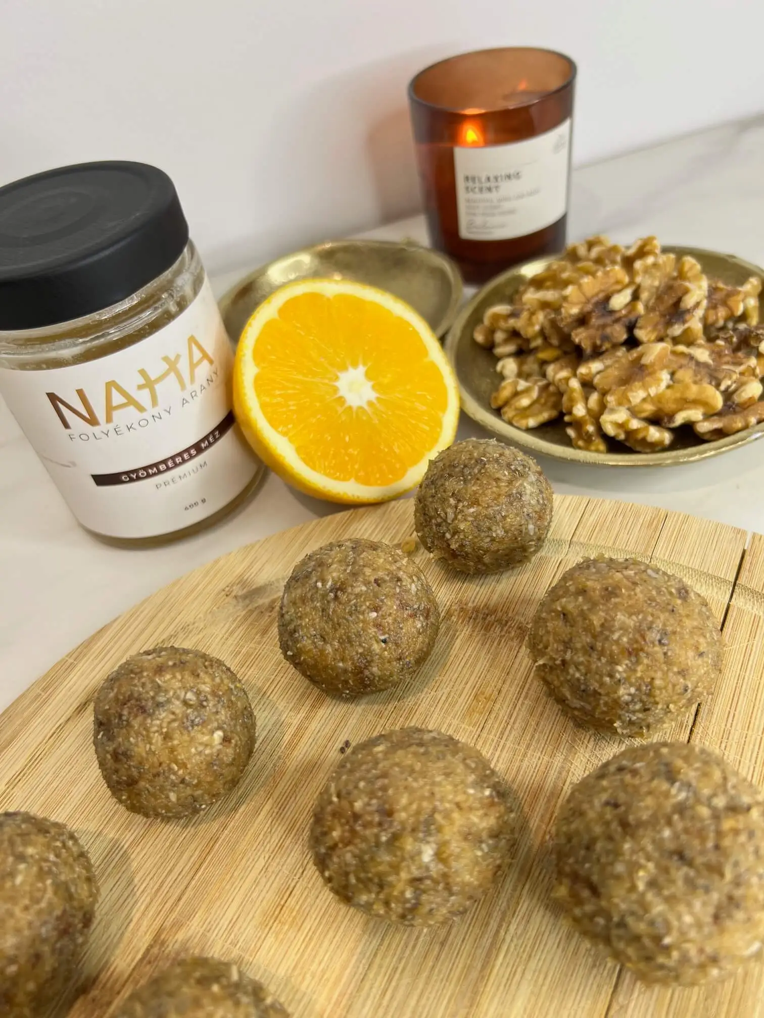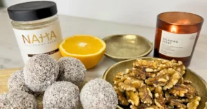 A datolya természetes édességet ad, így nincs szükség hozzáadott cukorra, a dió és a kókusz kellemes ropogósságot, a narancs pedig friss, üde ízt kölcsönöz a falatoknak.